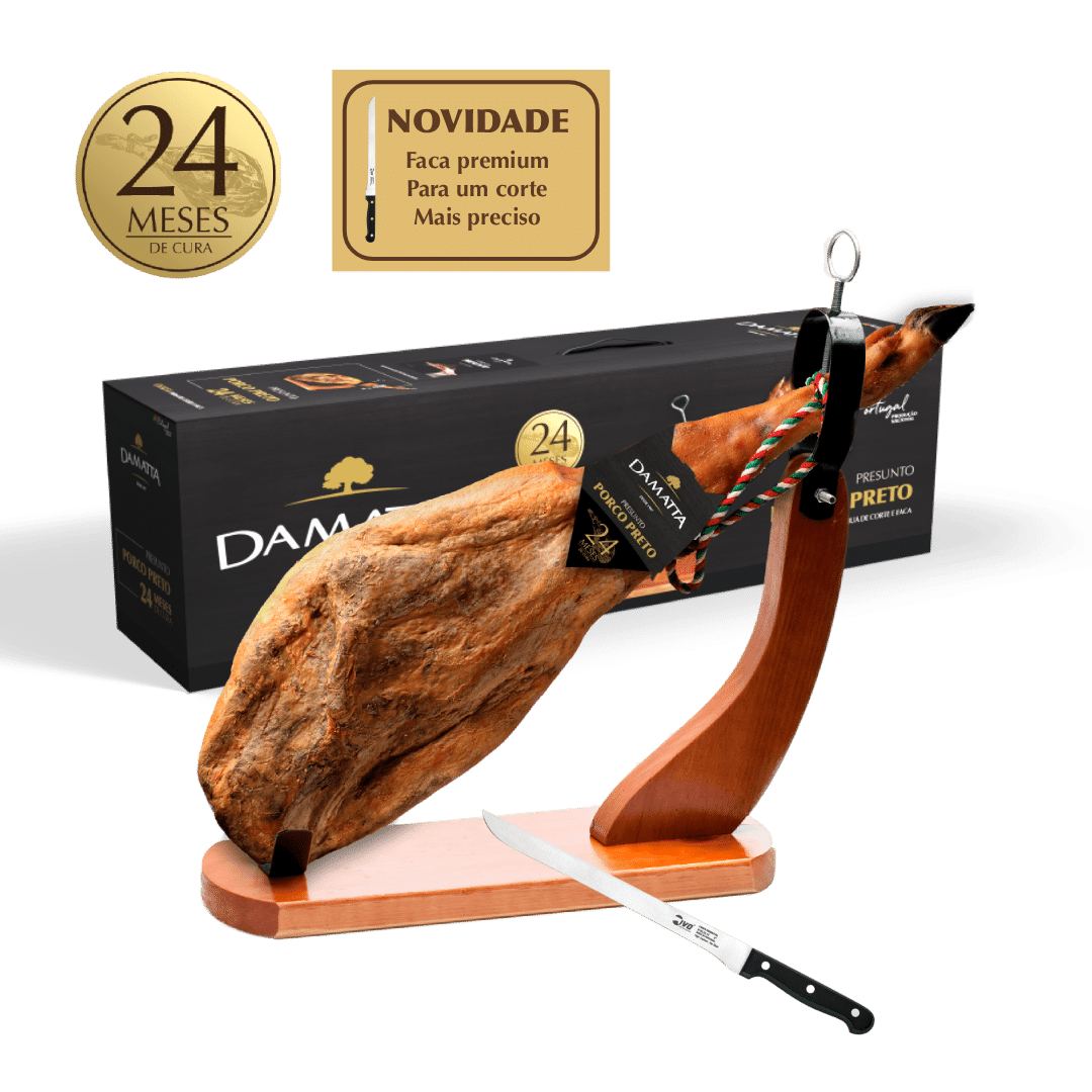 Agora com faca premium, garantindo um corte ainda mais preciso e elegante do seu presunto. Mantém-se a base e o guia de corte, para uma experiência completa e sofisticada.