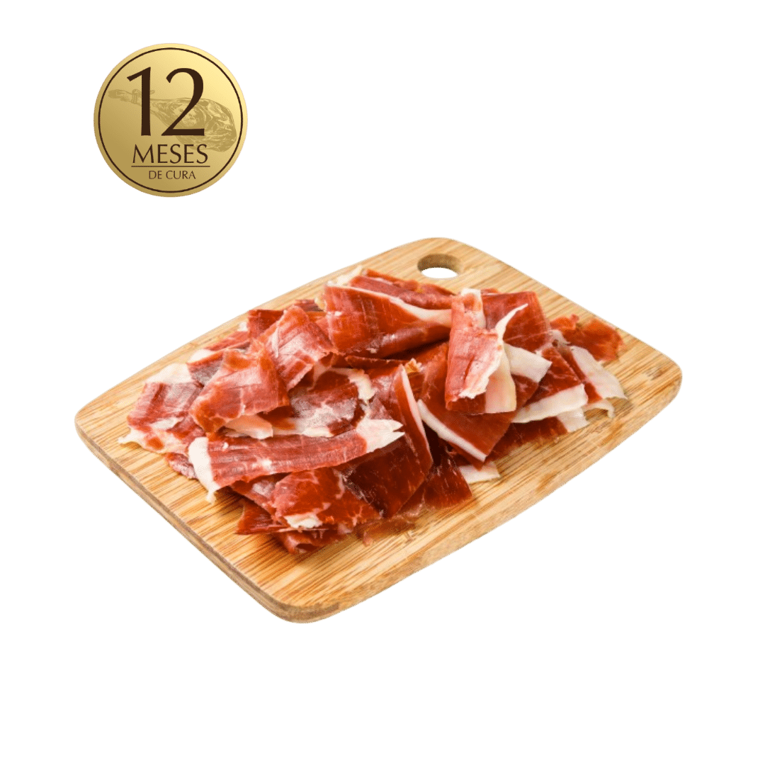 Fatiado à mão pelos nossos mestres de corte de presunto Damatta. O nosso presunto com 12 meses de cura, tem um sabor acentuado, persistência aromática e textura macia, com características de paladar salgado, esta é a sua carta de apresentação.